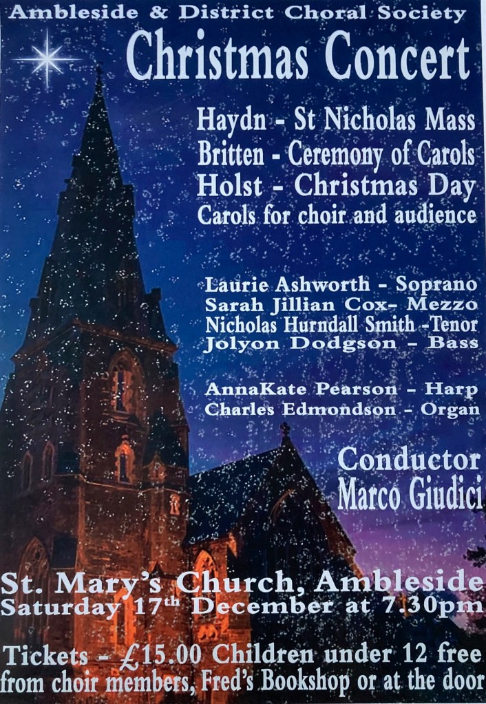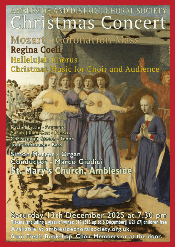 Our Christmas concert 2026 featured the Mozart Coronation Mass (K317) and also Mozart’s Regina Coeli (K 276). Along with various Christmas songs and carols.